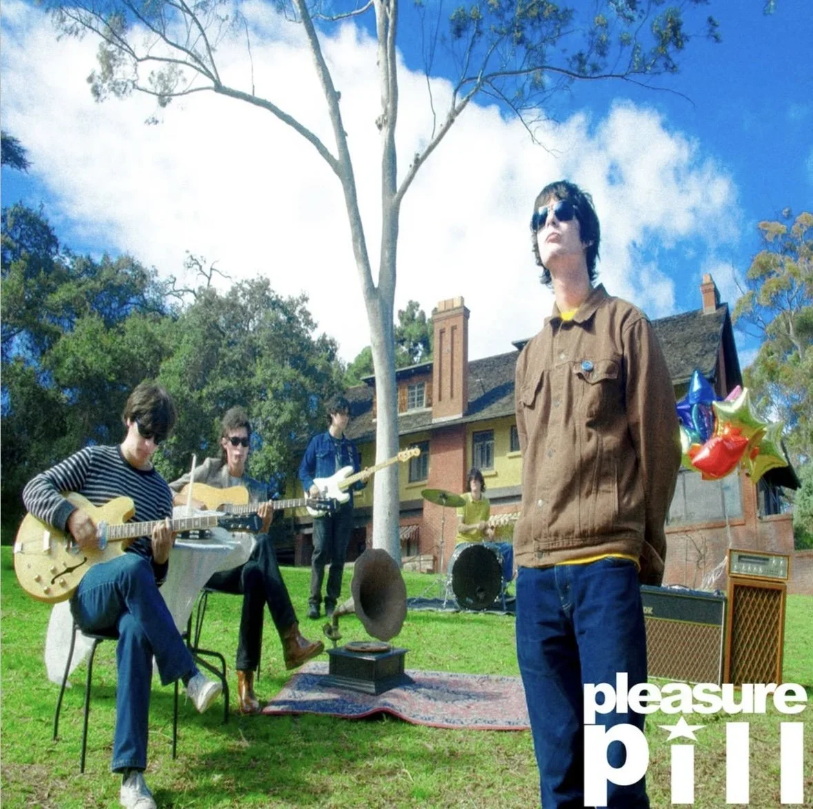 After walking through a cloud of cigarette smoke and a young-adult crowd full of tattoos, layered lace and denim jackets, the dimly lit room/bar centered on a three foot high stage. The echoing chatter in the space diminished as the Pleasure Pill boys walked on, starting off their set with “Get There Soon”, and instantly transformed the place from a small venue to Wembley Stadium. The drummer, Dominic Friedly, dominated controlled yet explosive drums that got our chests beating outside of ourselves as Ethan Paz and Justin Bordwell went heavy on the guitar, and John McCain on bass. “Favorite Color Gold” sounded like an extension of The Stone Roses in the most original and satisfying way possible, before performing a cover of “Waterfall” by The Stone Roses. The reverbed, anthemic and punchy noises coming from the entire band created a tangible beat that came onto the crowd like a wave and eventually consumed everybody in the room. Each person was rocking back and forth, banging their head, and thoughtlessly dancing with their friends by the second song. It can be hard at times to go to a concert and truly get taken over by the music, but Pleasure Pill has this way of being so loud, with melodies so smooth and cohesive, there’s no room to hear yourself think or constrict yourself from moving along.